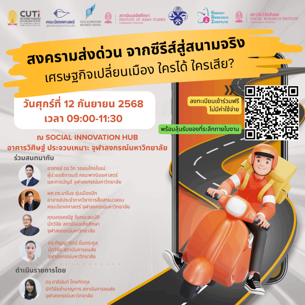 📣 ขอเชิญเข้าร่วมการเสวนา “สงครามเดลิเวอรี” เศรษฐกิจเปลี่ยนเมือง ใครได้ ใครเสีย?