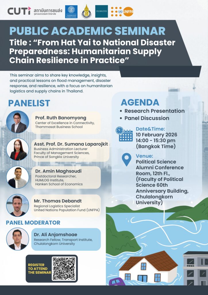 This seminar explores real-world lessons from flood management, disaster response, and humanitarian supply chain resilience in Thailand, drawing insights from both research and practice. 🌏