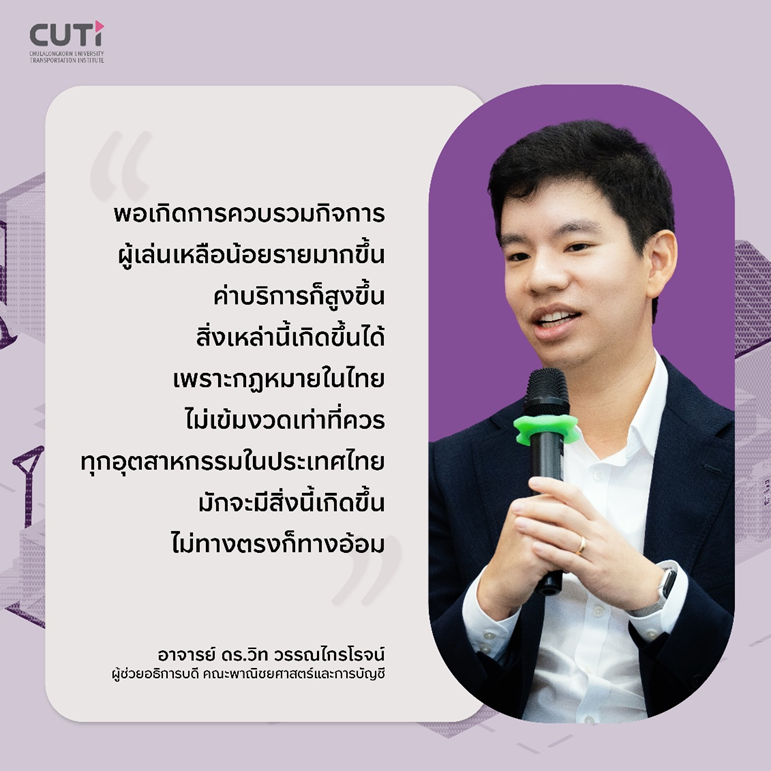 อาจารย์ ดร.วิท วรรณไกรโรจน์ ผู้ช่วยอธิการบดี คณะพาณิชยศาสตร์และการบัญชี ชี้ให้เห็นว่าการแข่งขันของธุรกิจนี้ว่าแบ่งได้เป็น 3 ประเด็นสำคัญ คือ