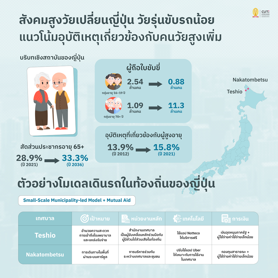สถาบันขนส่งจุฬาฯ แนะโมเดลระบบคาร์พูลโดยชุมชนจากประเทศญี่ปุ่น ให้ท้องถิ่นเข้ามามีส่วนร่วมมากขึ้น รับมือสังคมสูงวัยในไทย